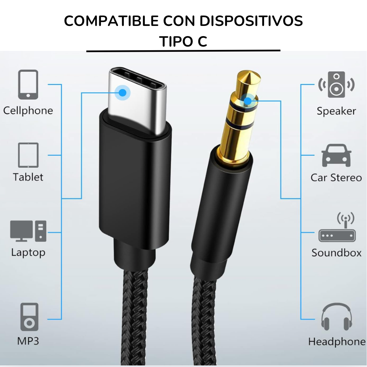 🎵 Cable Adaptador USB-C a AUX 3.5mm 🎧