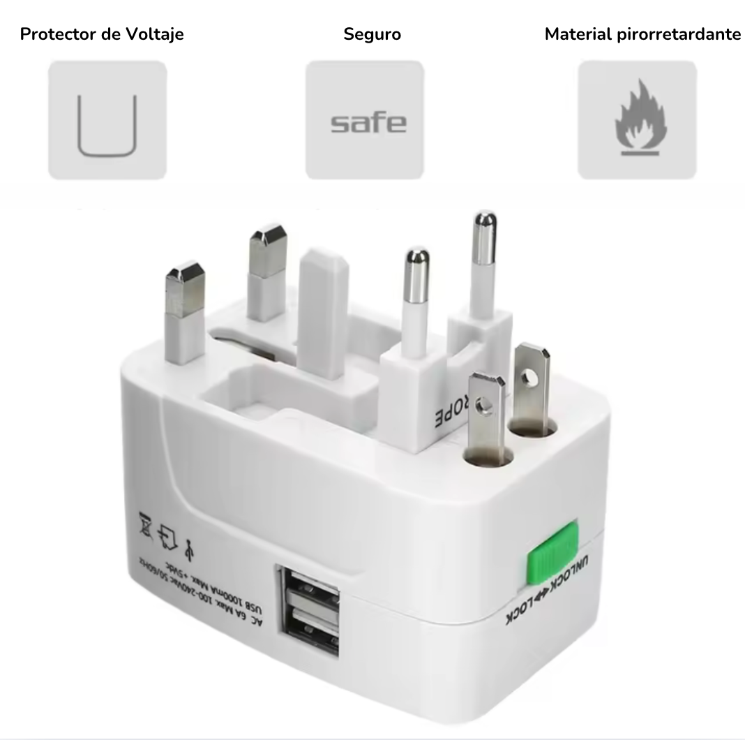 Adaptador Viajero Convertidor Universal Europeo Con 2 Puertos Usb