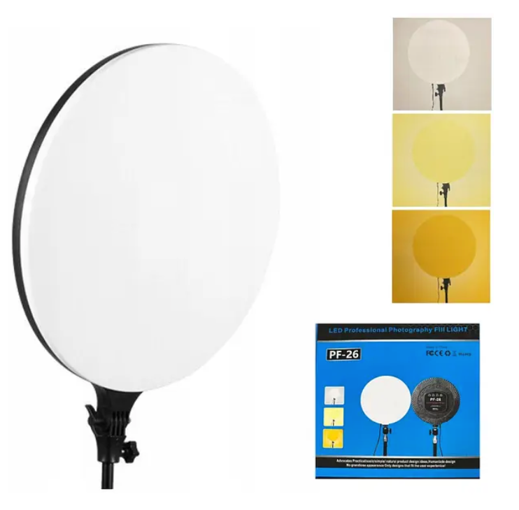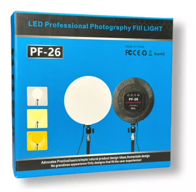 - La lámpara LED redonda PF-26 es una solución de iluminación profesional asequible para la toma de fotografías y vídeos, la fotografía de sujetos y la iluminación adicional. - - La lámpara dispone de 3 modos de iluminación: blanco cálido, frío y neutro.