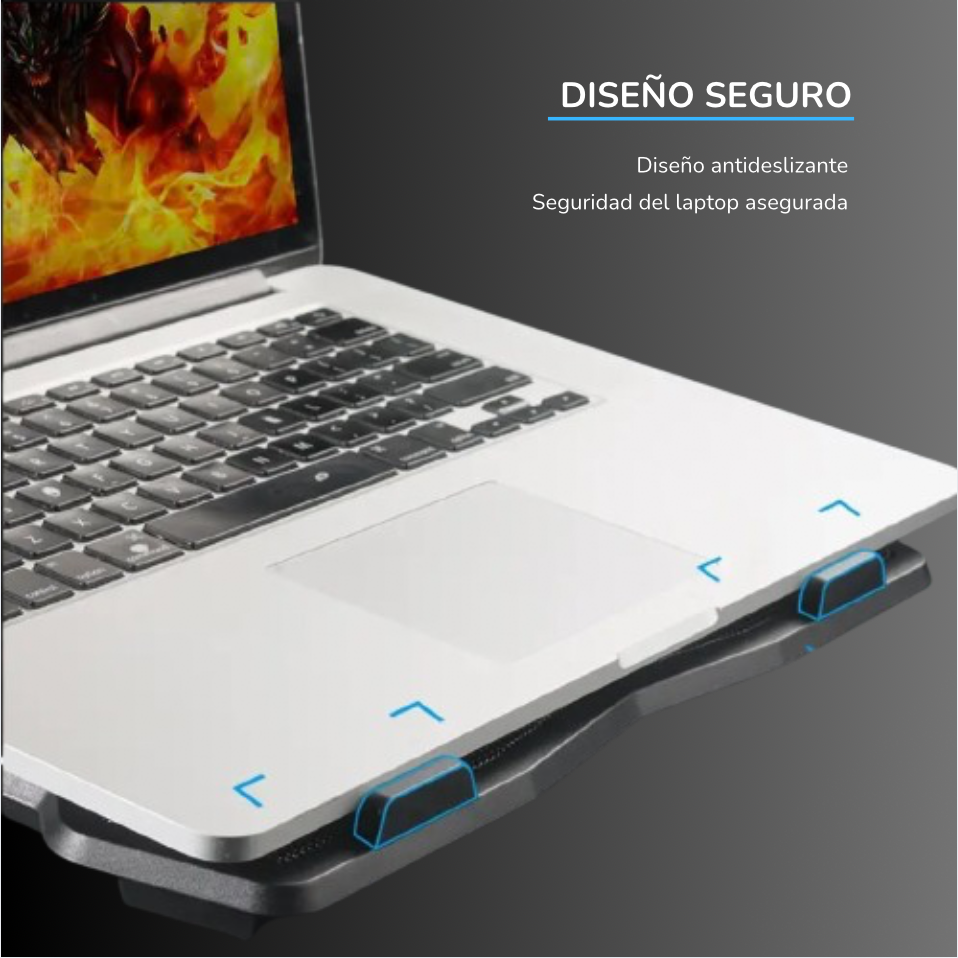 Diseño especial, eficiente y silencioso, la cual puedes cargar en el maletín de tú Laptop, equipado con luz azul de neón y diseño inclinable. La Cooling Pad es un refrigerador para portátiles para que la puedes llevar a donde vayas con tu portátil.
