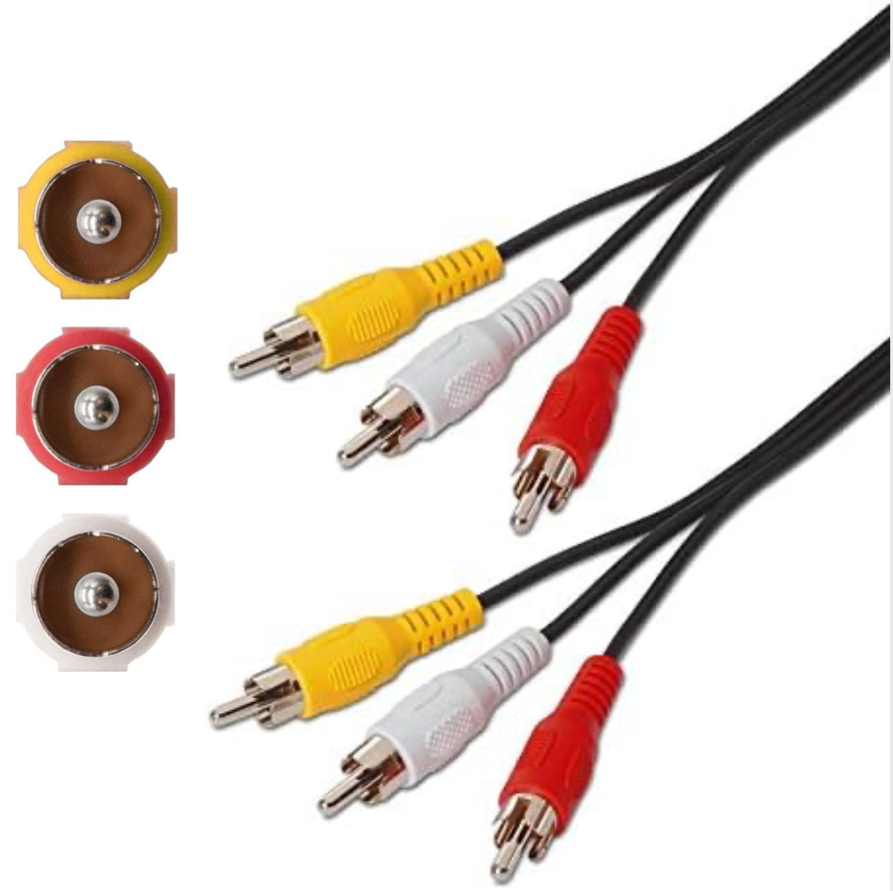 ✅ 3 conectores RCA (rojo, blanco y amarillo) en ambos extremos: audio estéreo + video compuesto.