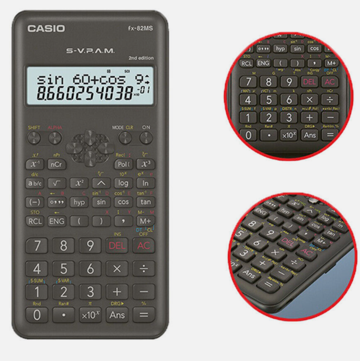 Con su diseño ergonómico y resistente, la Casio FX-82MS es perfecta para el uso diario en aulas, oficinas y laboratorios. ¡Optimiza tu trabajo matemático con una calculadora confiable y eficiente!