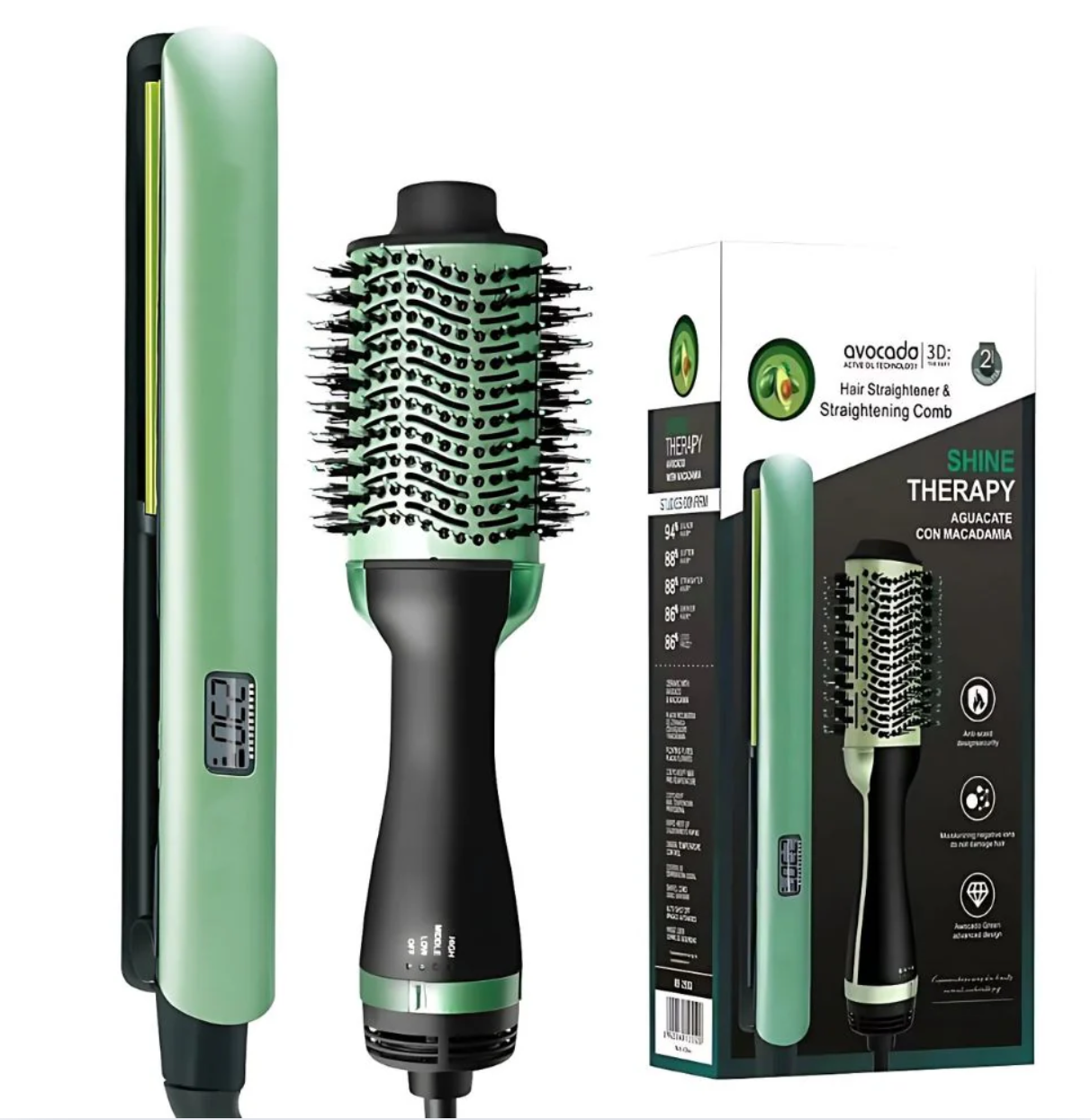 Si buscas practicidad, cuidado y resultados profesionales, el Combo Plancha y Cepillo Secador con Aguacate es la opción perfecta para ti. ¡Luce un cabello suave, brillante y saludable todos los días! ✨