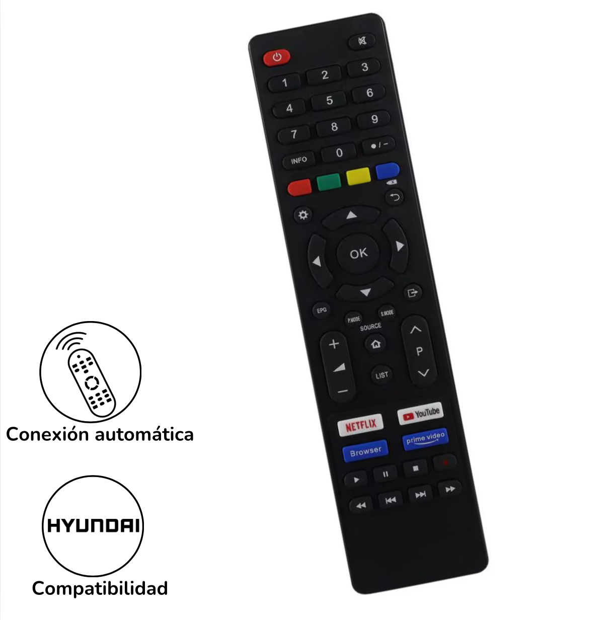 Renueva el control de tu televisor con el Mando a Distancia de Reemplazo Hyundai, diseñado para ser 100% compatible con televisores Hyundai Smart TV, LED y LCD. Con un diseño ergonómico y funcionalidad mejorada, este control remoto es la mejor alternativa para sustituir tu mando original.