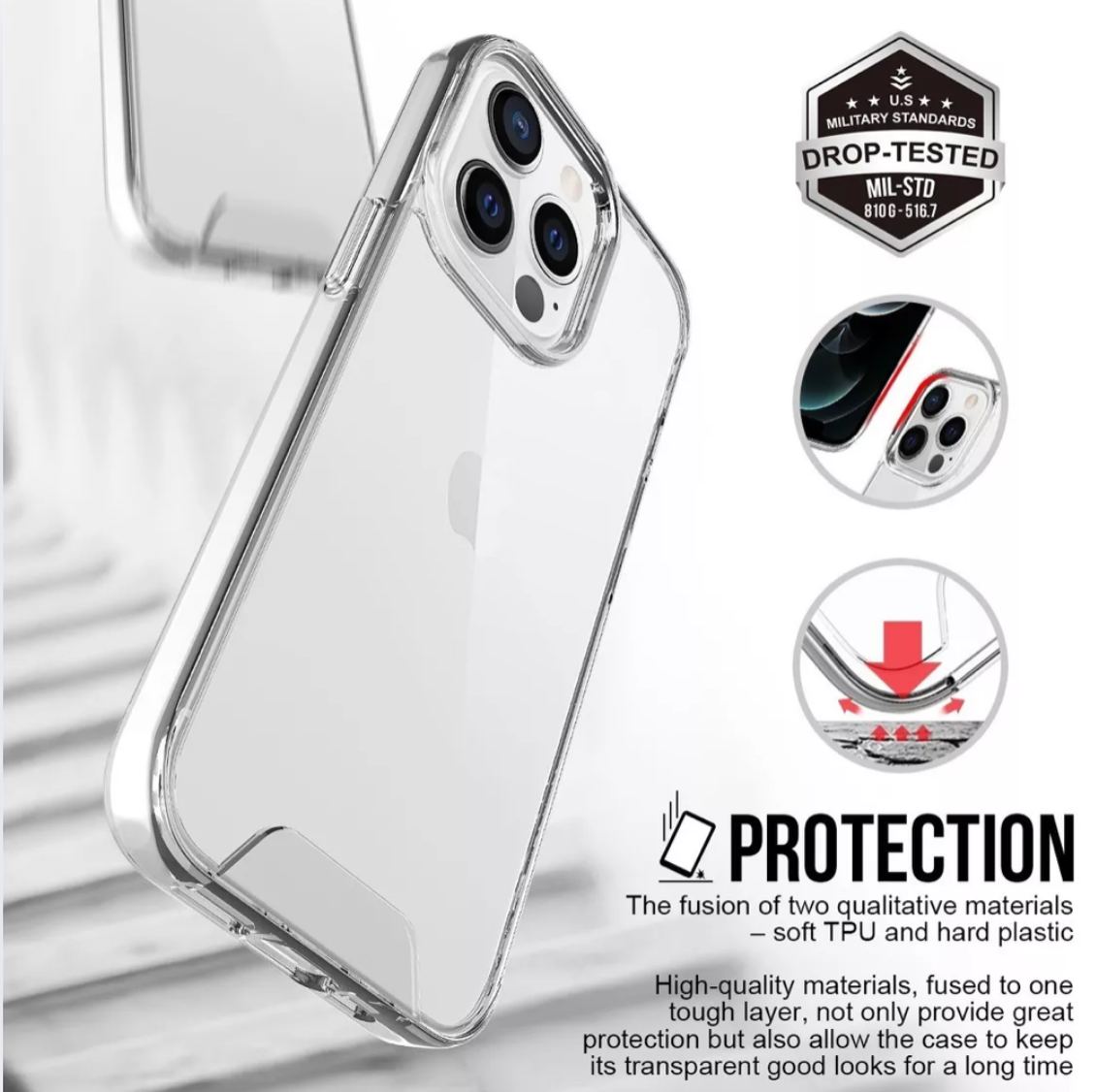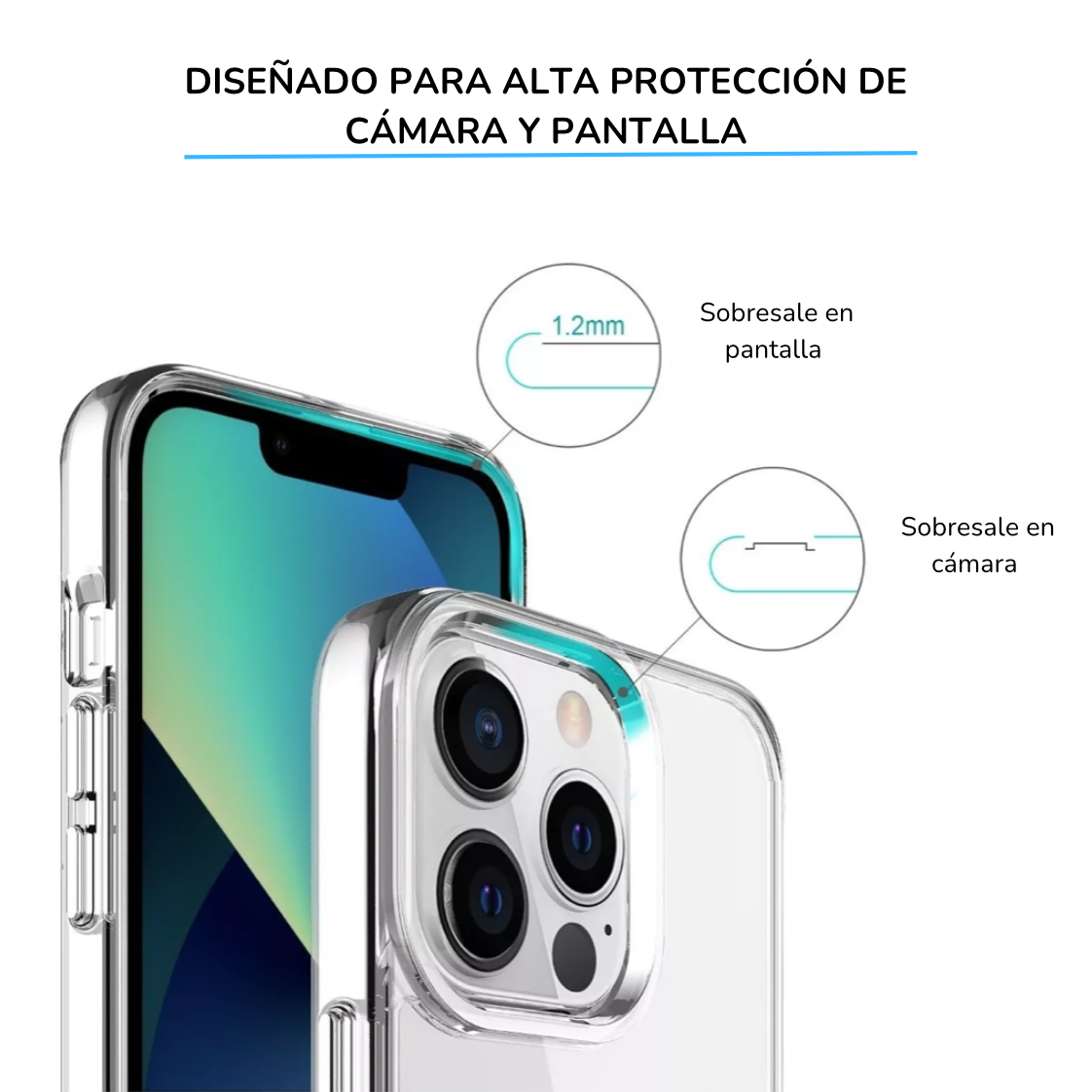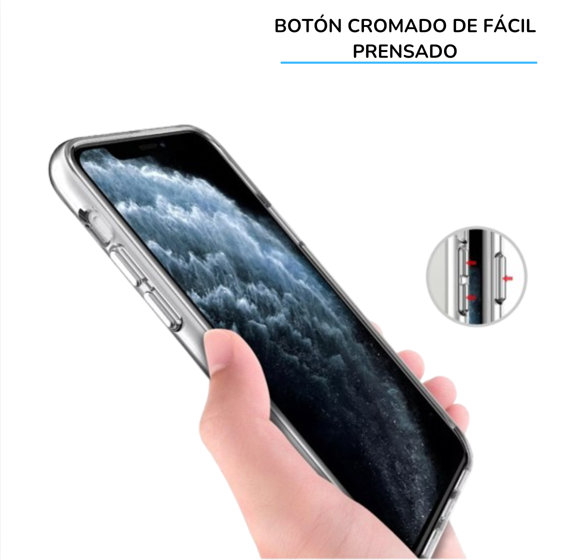 Funda totalmente transparente de reverso acrílico y bordes en TPU flexible que brindan gran protección al equipo antes caídas accidentales