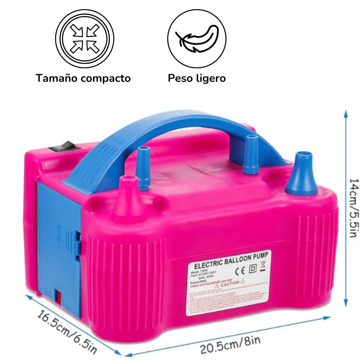 ¡Decora rápido y sin esfuerzo! Este inflador de globos eléctrico es ideal para fiestas, bodas, cumpleaños y celebraciones. Su diseño ligero y portátil facilita el transporte y almacenamiento. 🥳🎊