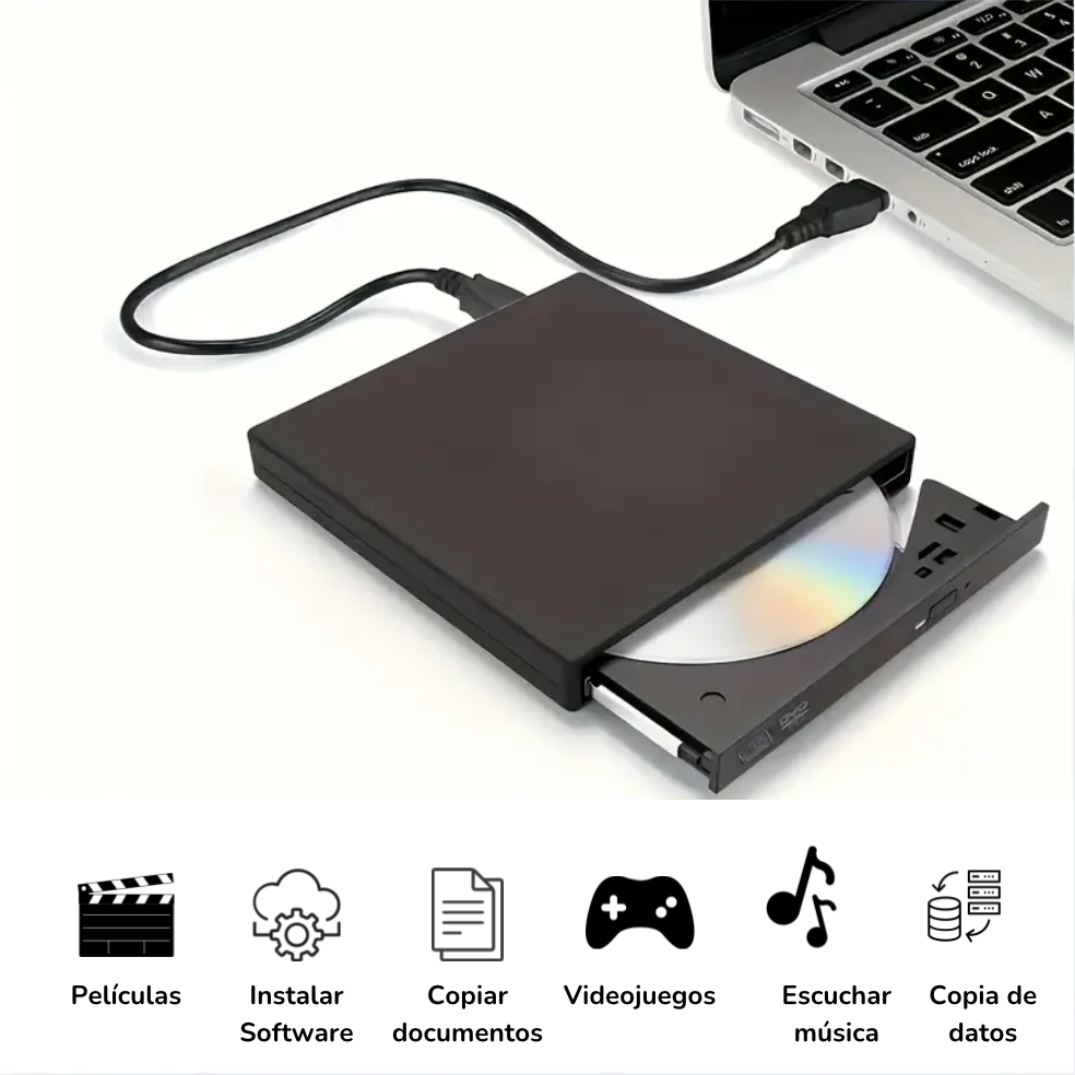 - Ideal para laptops sin unidad óptica, respaldo de archivos, instalación de programas antiguos o disfrutar de tus películas en DVD.