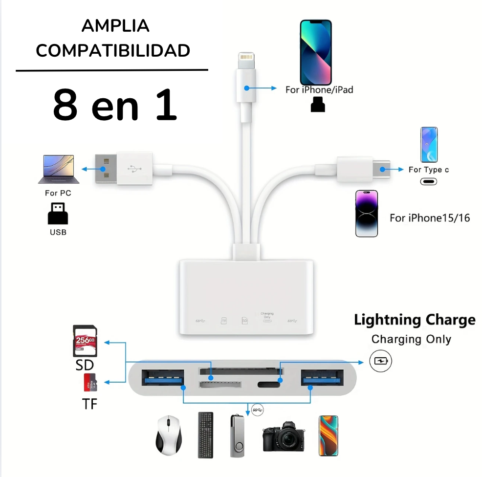 📥 Lector de Tarjetas y Adaptador Multifunción 8-en-1 📤