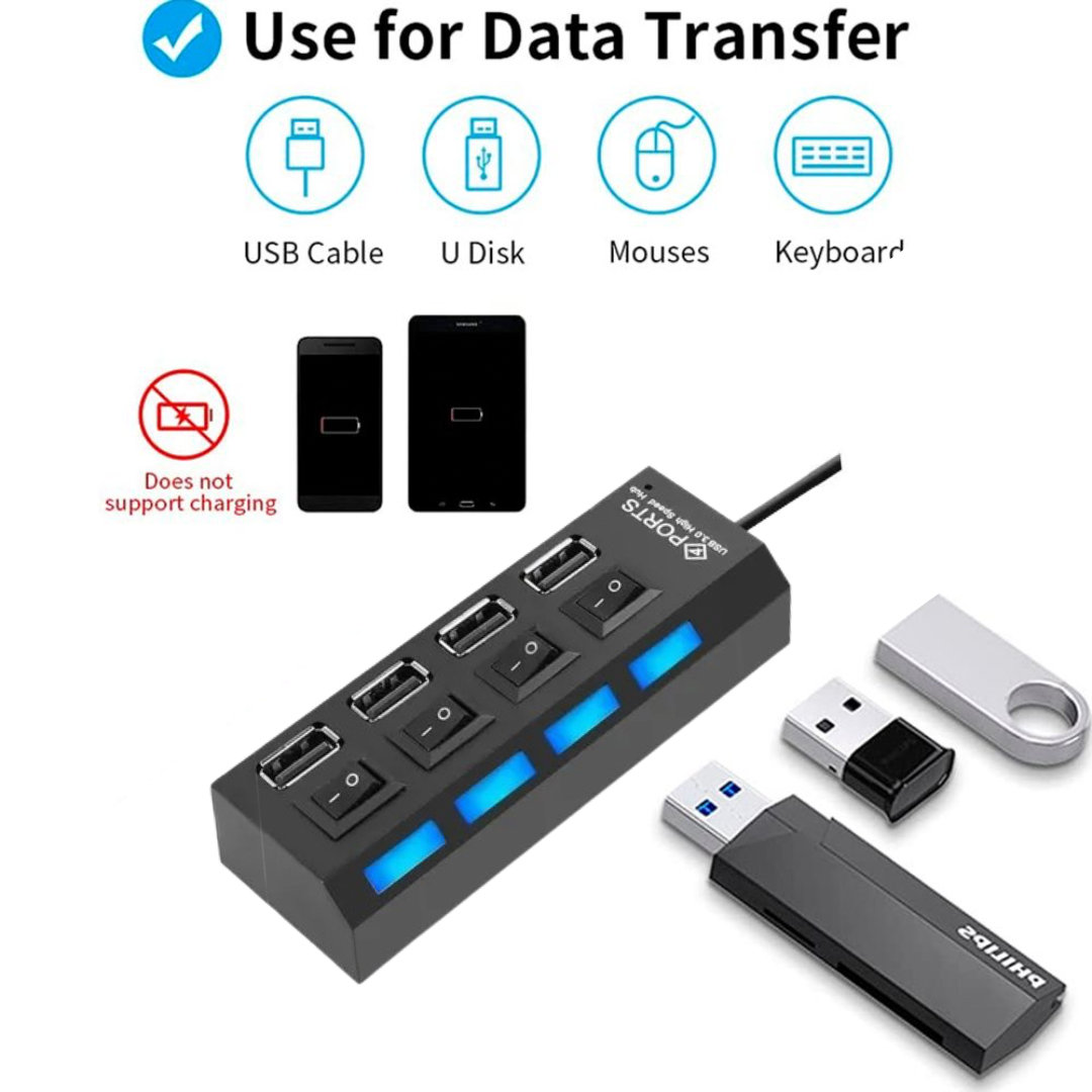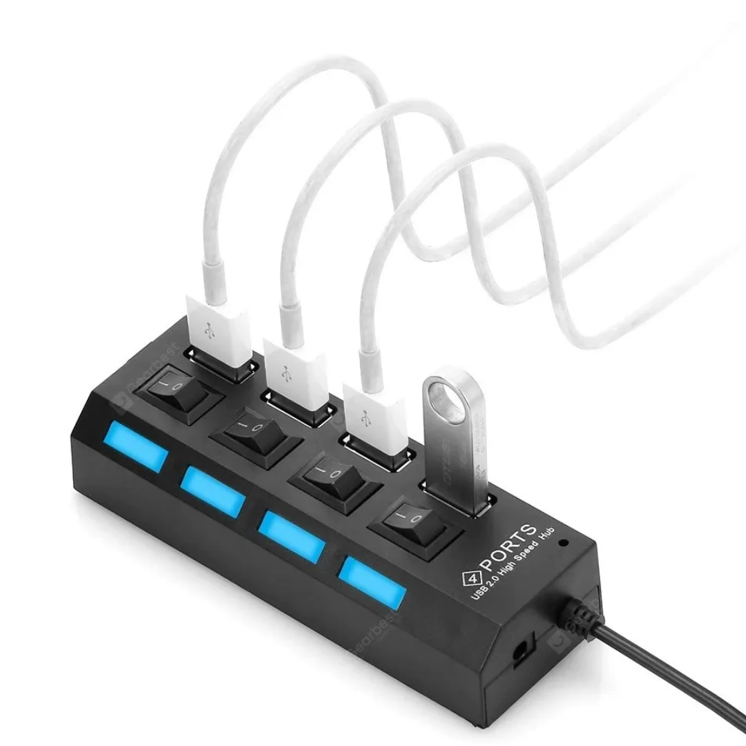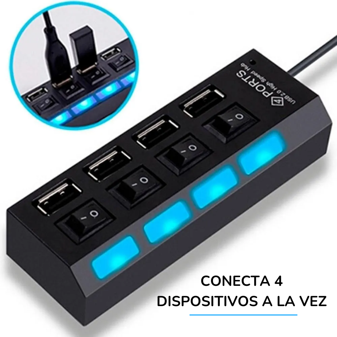 🔌 Hub USB Multipuerto 2.0 4 Switches – Con Interruptores LED Individuales