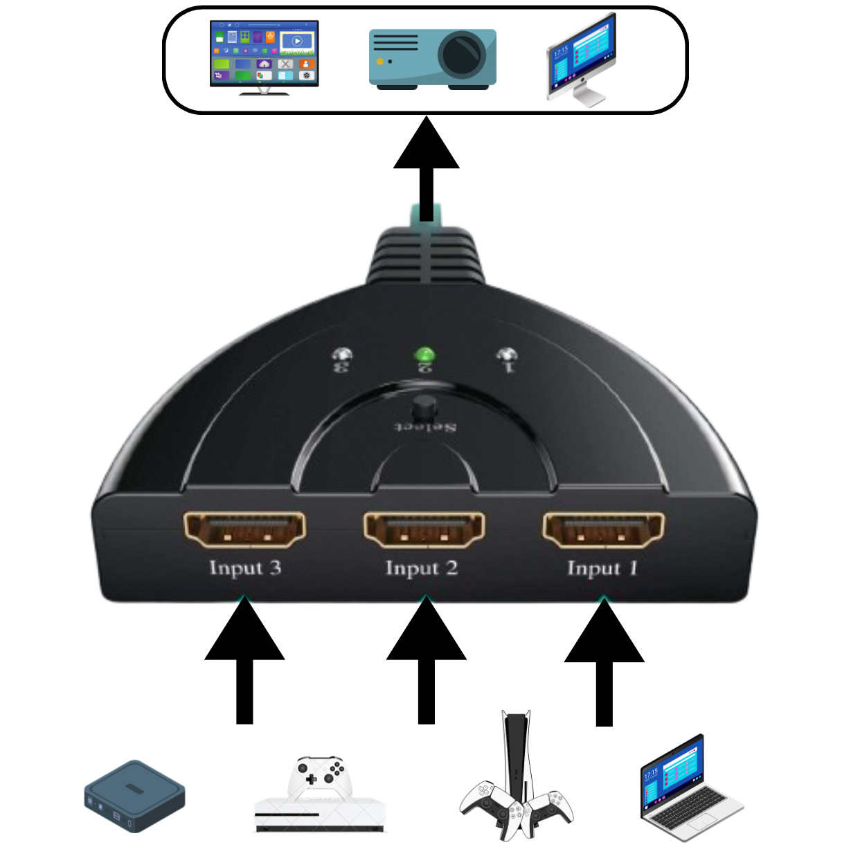 Conmutador HDMI 3 Puertos – Conexión Rápida y de Alta Calidad