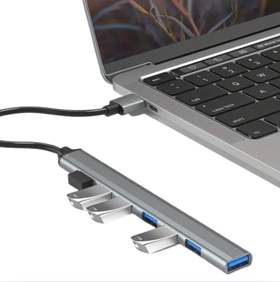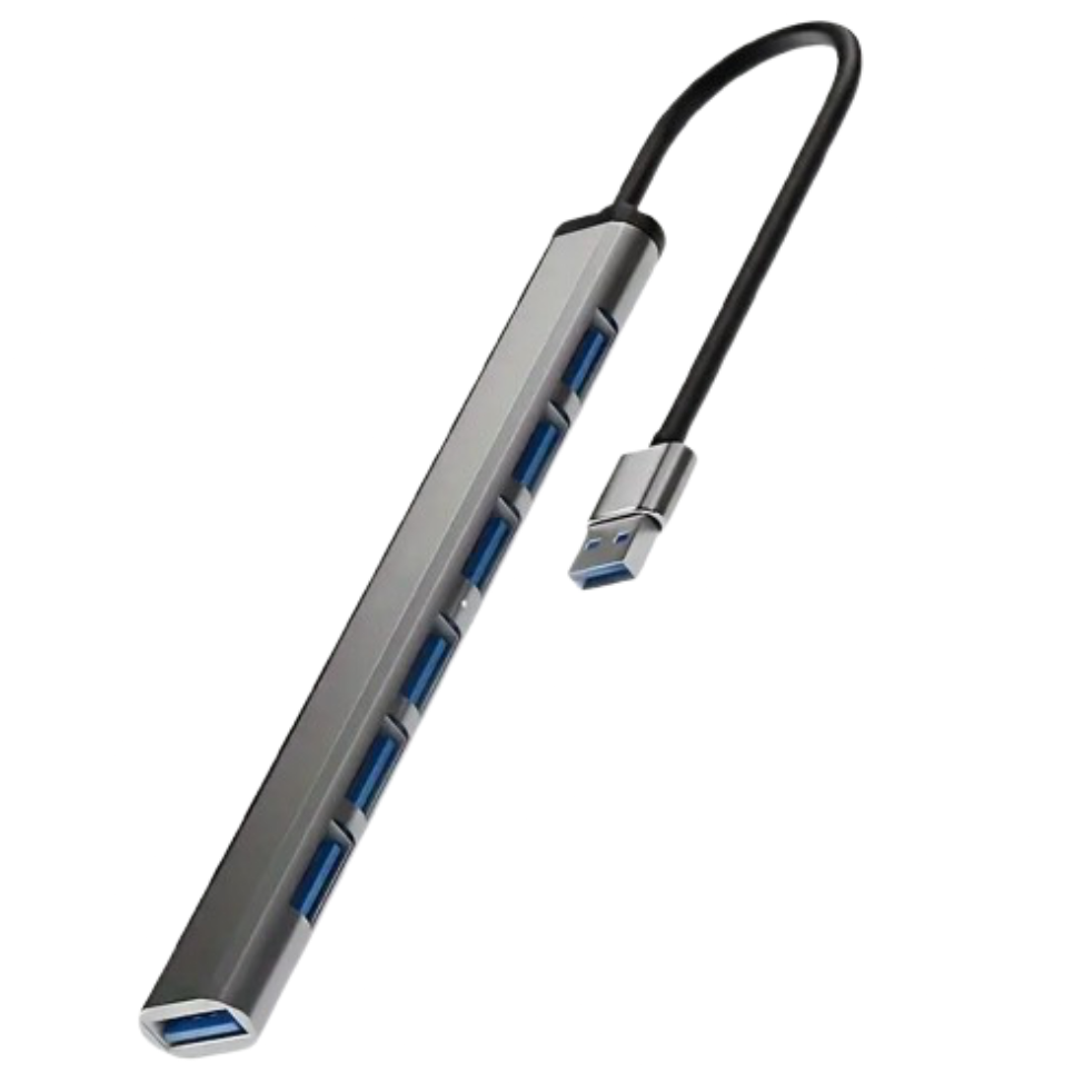 Este práctico hub USB de 7 puertos es la solución ideal para quienes necesitan conectar varios dispositivos a su computadora al mismo tiempo, de forma rápida, ordenada y eficiente.