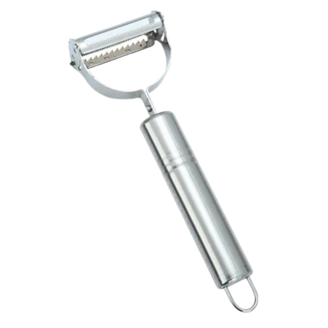 Prepara tus comidas como un chef con este práctico utensilio 2 en 1. Pela y corta en tiras tipo juliana frutas y verduras de forma rápida y sin esfuerzo.