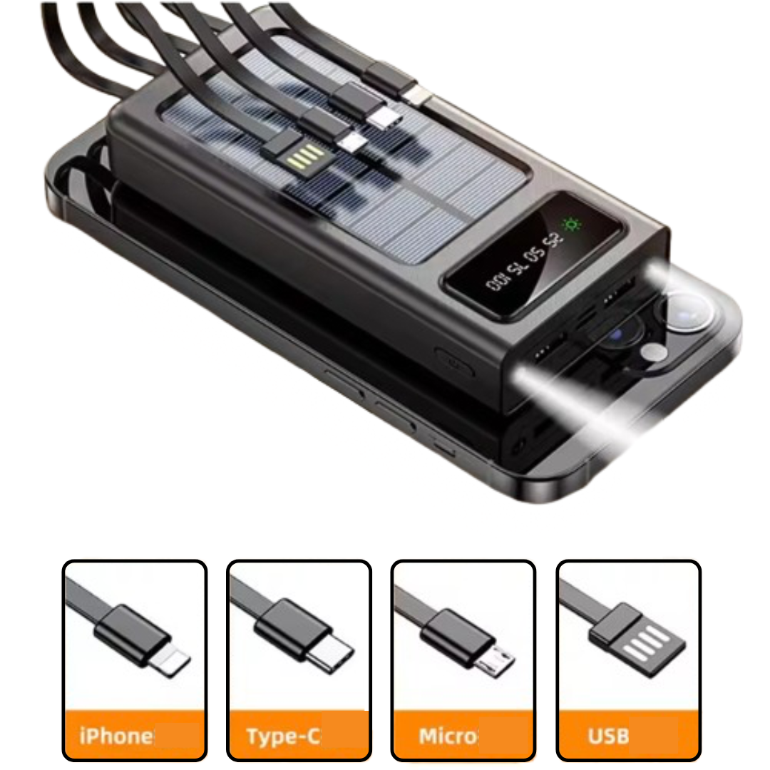 • 🔋 Alta capacidad de 20.000 mAh – carga hasta 4 veces un celular estándar