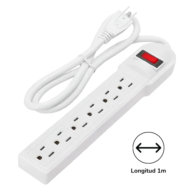 La Multitoma Eléctrica de 6 tomas es la solución práctica y segura para conectar múltiples dispositivos al mismo tiempo. Diseñada con polo a tierra para mayor protección, es ideal para el hogar, la oficina o espacios de trabajo.