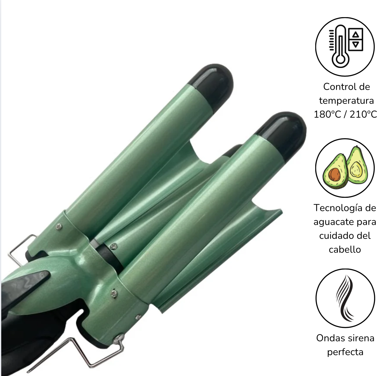 Rizador Ondulador Aguacate Triple Tubo Ondas Sirena