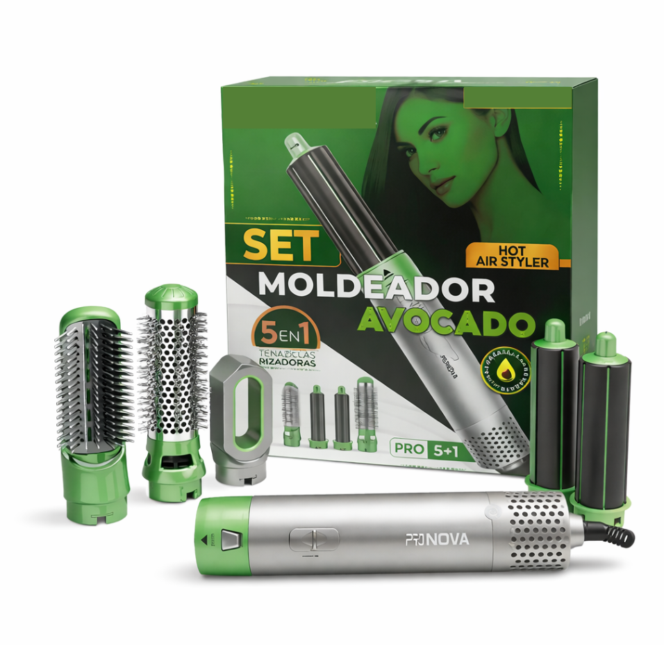 Transforma tu rutina de peinado con el Set Moldeador PRONOVA PRO-5+1, un completo sistema 5 en 1 que alisa, ondula, da volumen, seca y moldea tu cabello con resultados profesionales desde casa. Diseñado con tecnología Hot Air Styler y tratamiento de aguacate, protege la fibra capilar mientras estilizas, dejando el cabello más suave, brillante y sin frizz.