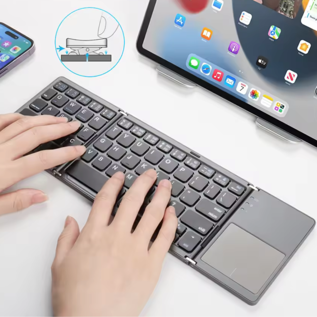 Lleva tu productividad a cualquier parte con este teclado plegable ultracompacto, que combina escritura cómoda y control táctil en un solo dispositivo. Su diseño ligero y plegable lo hace perfecto para viajes, trabajo remoto o uso diario en casa y oficina.