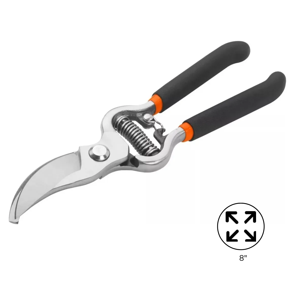 Haz que la jardinería sea más fácil y eficiente con esta tijera podadora de 8 pulgadas. Diseñada para cortes limpios y precisos, es ideal para podar ramas pequeñas, flores y plantas delicadas.