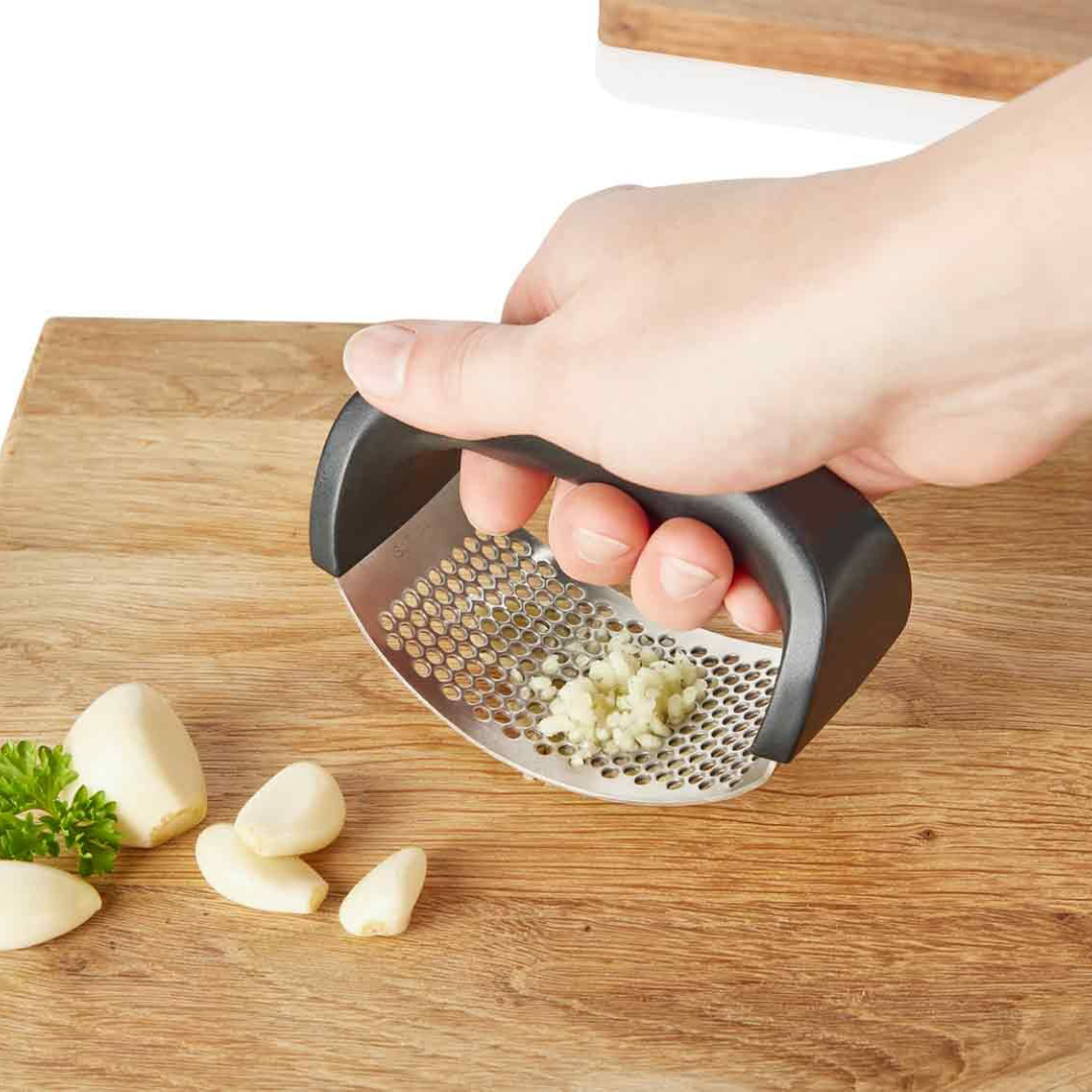 Pica y tritura ajos de forma rápida, sin esfuerzo y sin ensuciarte las manos. Su diseño ergonómico y curvado se adapta a la palma, haciendo la presión más fácil y cómoda.
